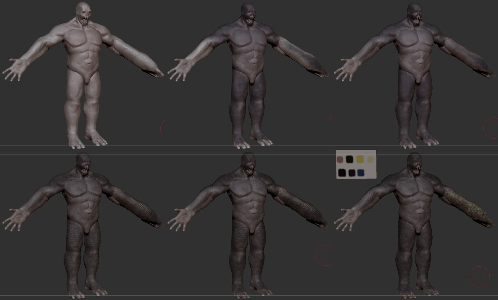 I found a base mesh I had modeled in 3dsmax before I had started using zbrush and decided to go with that. I was pressed for time, so I use zremesher for retopology except for the head which was done in Topogun(Time did not permit me to do 100% manual retopo). My biggest regret as parts of the mesh do not necessarily match up. I have since learned a better workflow I will implement for my next character.